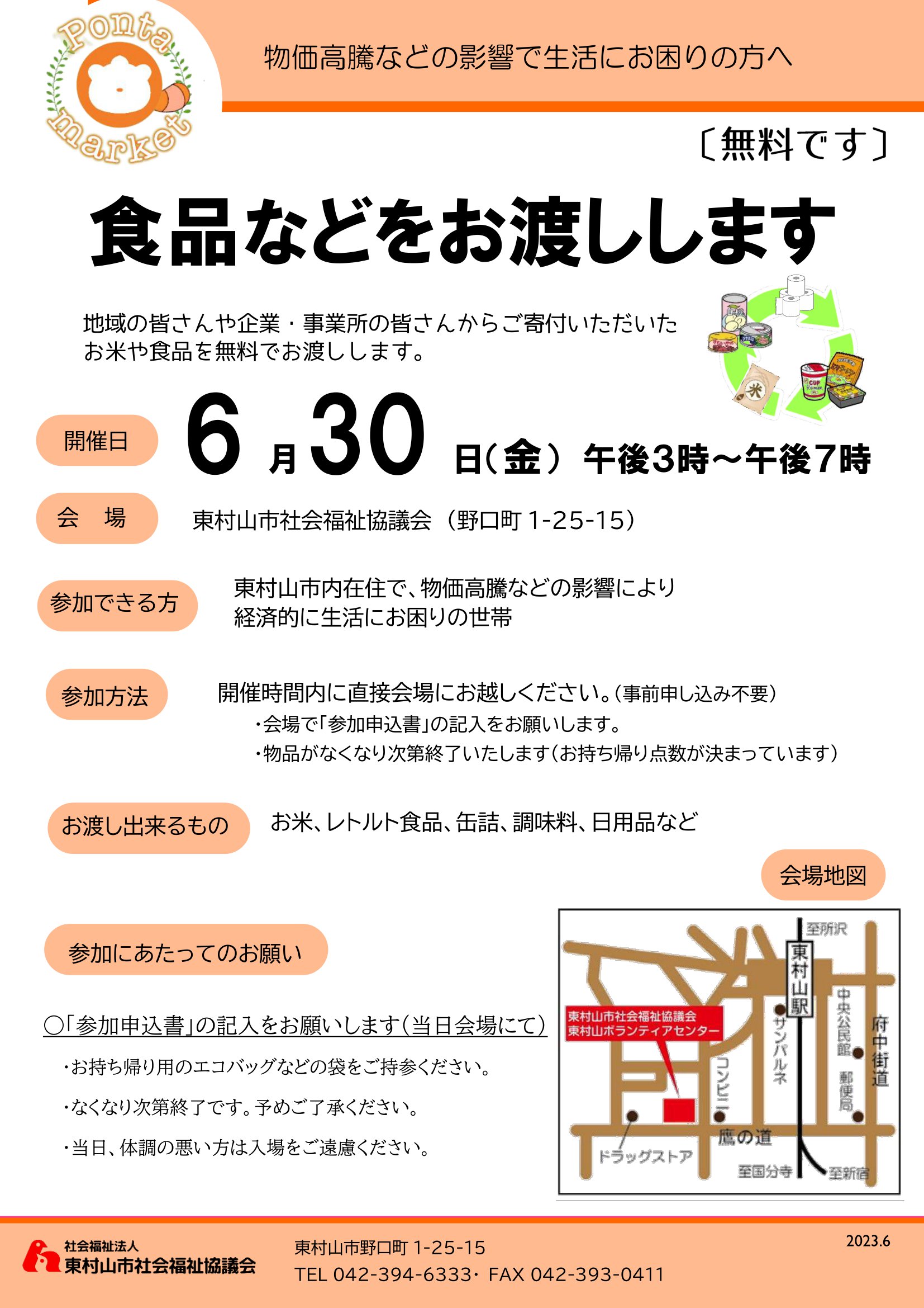 〇物価高騰などで生活にお困りの方へ「ぽんたマーケット」チラシ(PDF)