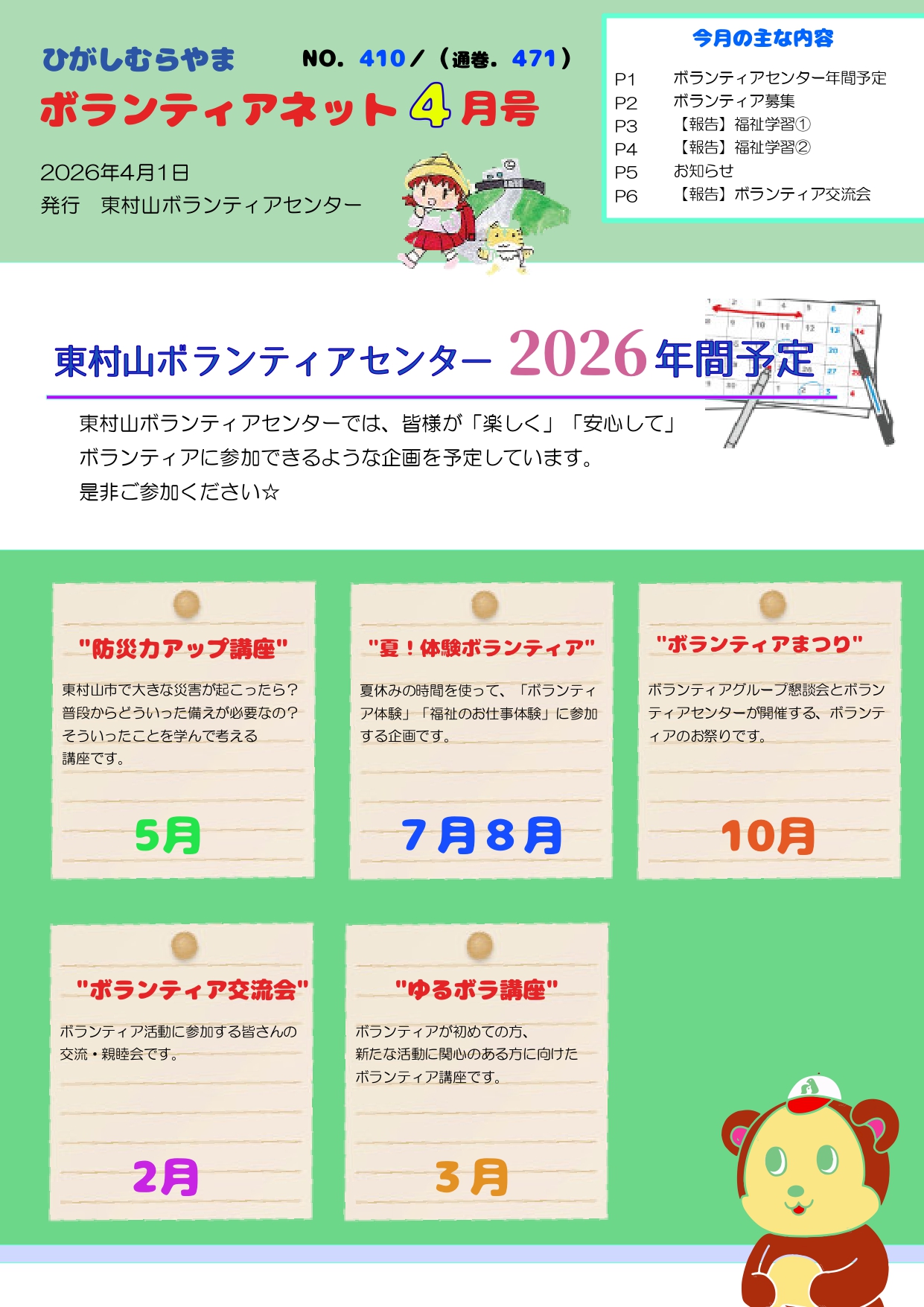 ボランティア活動やボランティアセンター・社会福祉協議会が行っている行事などが載っています。